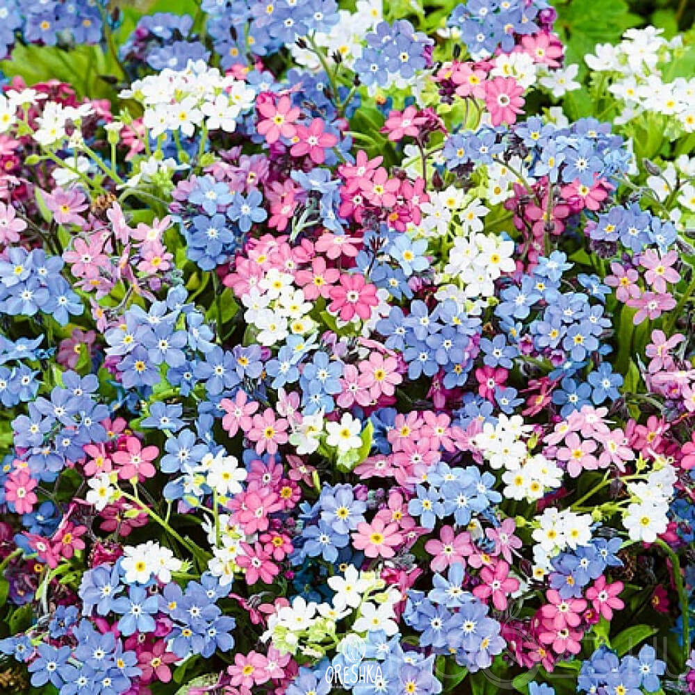 Színkeverék kék,rózsaszín és fehér virágok magvait tartalmazzák.